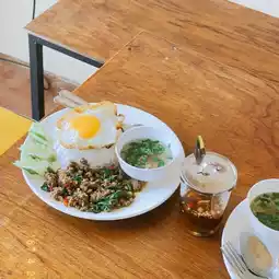 🍲🍜 Popular stir-fried chicken with basil and rich kuay jap and other savory menus.