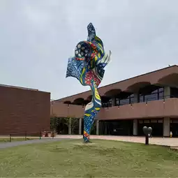 Cross the tracks to head to the main hall.