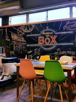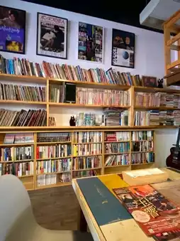 In the back, they sell imported T-shirts, and there is art on the blackboard, which is really stylish.