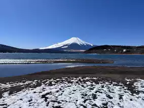 Driving around Lake Yamanaka offers many picturesque spots for photography. During our visit, there was still a bit of snow, creating a fluffy white landscape to enjoy. The real scenery is breathtaking and far more beautiful than any photo can capture (or maybe it's just my lack of photography skills). There are plenty of accommodations around Lake Yamanaka, many of which offer clear views of Mount Fuji. However, tonight we are heading back to stay at Lake Kawaguchi.