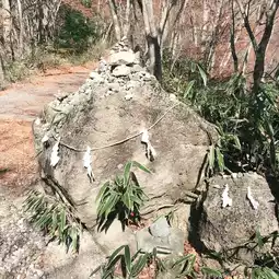 Ishiwari Mountain is located northeast of Lake Yamanaka, at an altitude of 1,413 meters. At the 8th station, you will find Ishiwari Shrine. It is a rare shrine whose deity is a large rock split into the shape of the kanji character for "stone". It has been said since ancient times that if you pass through the gap in this rock three times, good luck will open up. The water that seeps out of the cracks in the rock is also said to be a sacred water that is effective against eye and skin diseases.