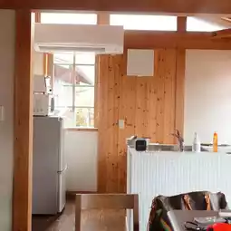 There is a bedroom in the semi-basement, and the open-air living room with a kitchen is very spacious.