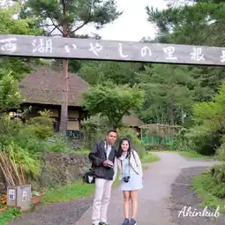 👉Then, take the Retro Bus to Kawaguchiko Station and transfer to the green Ratro Bus and get off at the Saiko Iyashi no sato Nenba stop.