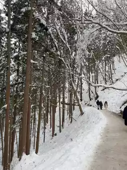 The adventure began with a picturesque hike through a snow-blanketed forest trail. The path, about 1.6 km long, was an experience in itself. Towering trees, the crunch of fresh snow underfoot, and the crisp mountain air set the tone for what was to come. The trail was well-maintained, but winter visitors should wear sturdy, waterproof boots and dress warmly to fully enjoy the trek.