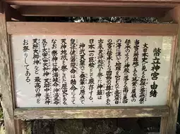 • Believed to be one of Japan's oldest shrines, dedicated to "Ame-no-Minakanushi-no-Kami" and the Five-Colored People Gods, rare deities of "creation of heaven and earth"