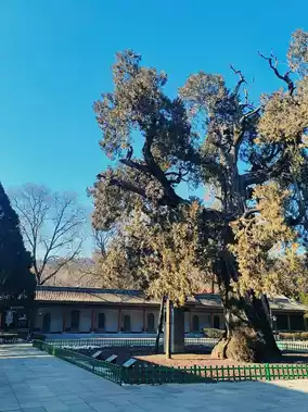 🌳 The Mausoleum of the Yellow Emperor: Ancient cypress trees form a lush forest, a picturesque landscape steeped in thousands of years of history.
