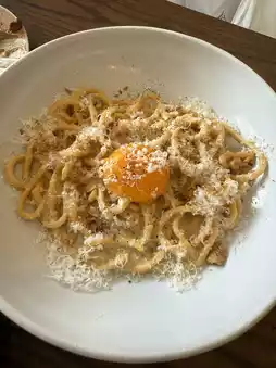 🧀 Cacio e Pepe – Pasta with rich cheese and egg yolk. Fragrant, rich and salty. Big, chewy noodles. Eat until you're full.