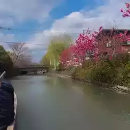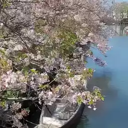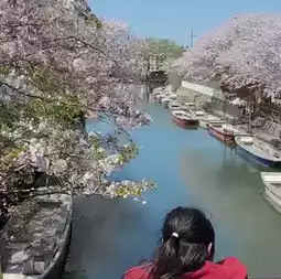On the small bridge to the river, there are several cherry blossoms blowing snow 🌸💮🌸💮