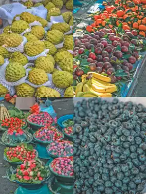 3️⃣ Fruit Paradise: Mangoes, loquats, custard apples, blueberries, dried mangoes, etc. It is recommended to go to the farmers market to buy them, where they are calculated by the kg, and the prices are reasonable. I bought them at [Renhe First Farmers Market], which is by the river. Most of the people there are locals buying things, and you can also see some unique local specialties.