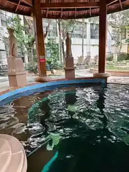 Hot spring is a major feature. The hot spring water here is a real geothermal hot spring. There are many pools with different water temperatures. There is a pool suitable for children. But not all of them are open. The small fish pond requires an extra fee of ¥20/person.