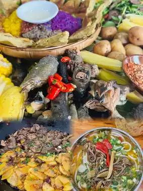 - Noon: Eat Yi-style "Tuotuo meat," large chunks of pork stewed until tender, dipped in chili powder so delicious you can’t stop, then drink a cup of homemade buckwheat wine🍶