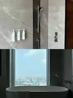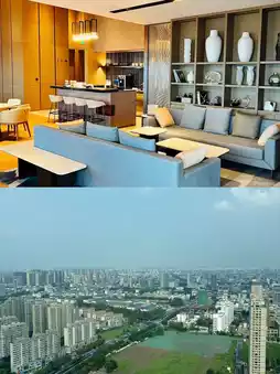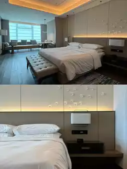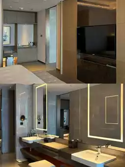 🏠This time I stayed in a deluxe king room on the 39th floor, about 60 square meters. The overall space looks quite large. There is a wardrobe at the entrance, and the floor-to-ceiling windows behind the sofa overlook the city. The bathroom is behind the TV, a separate long strip, with 2 washbasins in the middle, a toilet on one side, and a bathtub facing the window on the other side. The layout is very similar to that of W Hotel in Suzhou.