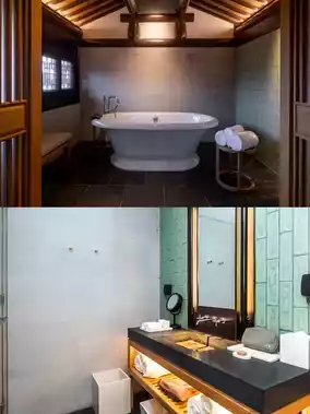 Each room has a private hot spring bath. The hot spring water is drawn from Dayang Bay, with a temperature of 62°C and a daily output of 8,000 cubic meters. Rich in minerals such as metaboric acid and metasilicic acid, it has high therapeutic value.