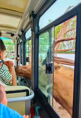 · Riding the electric cart: The milu deer will stick their heads into the cart to taste carrots; you can see them swimming in the lake, bathing, and rolling on the shore.