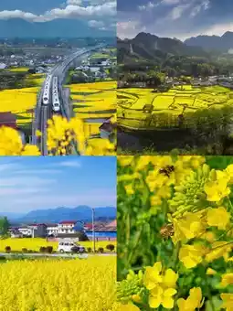 3. Nanzheng District: Chencun Flower Sea's rapeseed fields are nestled alongside reservoirs and green hills, creating a layered landscape. The Yuejialing Village viewpoint offers a panoramic view of the entire village and flower fields, and you can even capture spectacular shots of high-speed trains passing through the flowers. The Hanshan Flower Viewing Loop is also worth a visit, with picturesque scenery along the way.