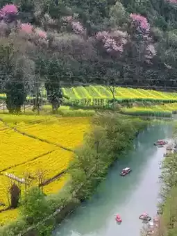🚶♂️ Standing in the Longwan Canyon, when the waves of flowers under your feet rush to the sky, you understand: some scenery needs to be visited in person. Hanzhong Rapeseed Flower Sea In Hanzhong, Shaanxi, is the world's largest contiguous flower sea, millions of acres of terraced fields and river bays intertwined into a U-shaped golden sea, several times the size of Wuyuan but less crowded and quiet. From mid-March to early April, the flower fields open for in-depth self-driving tours.
