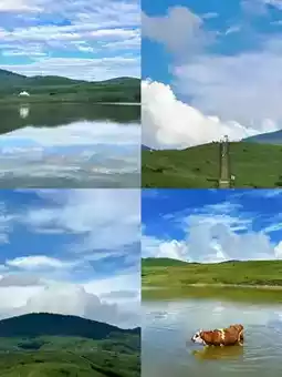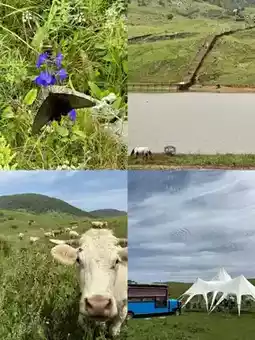 As you step into Shengwangping, a vast alpine meadow unfolds before your eyes. There is a perennial water pool here, known as Niangniang Pool. It is not only a beautiful natural landscape but also closely connected with history, culture, and legends, attracting many tourists. Looking around, you can see herds of cattle and horses, creating a vibrant scene. The cattle bathe and drink water in Niangniang Pool, while the horses leisurely graze, swishing their tails. In addition, there are ruins of the Tangdi Temple in the scenic area. The erosion of time has left only broken walls, like an old man silently telling stories of the past, instantly transporting people to that distant era.