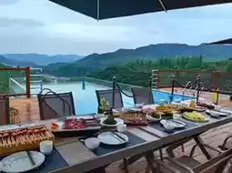 🌿Wooden cottages blend into the forested mountains, with emerald peaks and drifting clouds right outside your window. Wake up to birdsong in the morning!