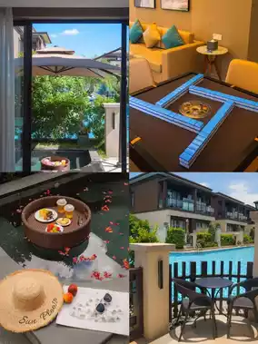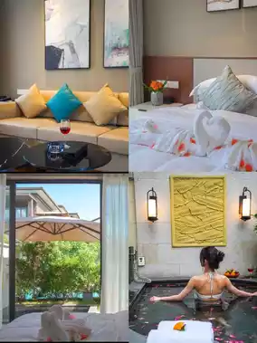 🌟The Hawaii Suite I stayed in was bright, spacious and comfortable! There is a courtyard hot spring inside♨️! You can also go directly to the Hawaii swimming lane! You can also play mahjong in the room!