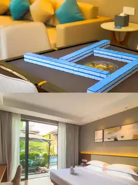 The room is also equipped with a mahjong table. Adults can enjoy floating afternoon tea or play mahjong in the courtyard and enjoy a leisurely holiday. There is also an independent bubble pool in the room, which is very private. You can soak in the hot spring alone, close your eyes and relax, and enjoy the nourishment of the warm soup.