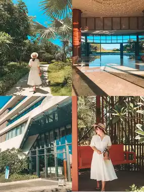 The hotel has a strong Southeast Asian vibe, surrounded by greenery and an infinity pool. The strong holiday vibe and the infinity pool facing the vast sea make for great photos.