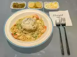 I ate sirloin katsu set and aglio olio. The katsu here is crazy!!!! The outside is crispy and the inside is soft, and it's heavenly when you dip it in truffle salt ><