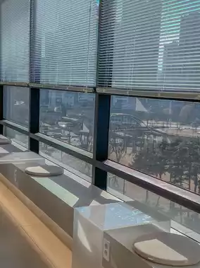 How pretty is the view of Okjeong Lake Park through the large windows~??🫰🏻