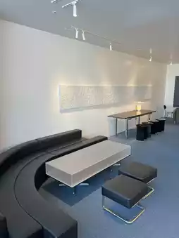 With its clean black and white color palette, vibrant lighting, and spaciously arranged tables, it's a perfect spot for laptop work or a casual chat!