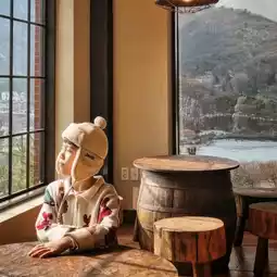The large, triangular windows and interior truly give off a mountain lodge vibe. There are also cute photo spots outdoors. Enjoying coffee while taking in the views of Gisan Reservoir and the snow-capped mountains was incredibly relaxing and enjoyable. 🙂