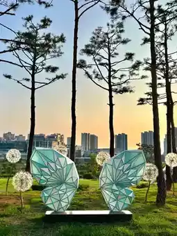 With a wide grass plaza where children can run around, the Stairway to Heaven, animal-shaped models, and even swings, it's a place where families can have fun all day long.