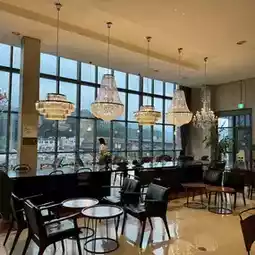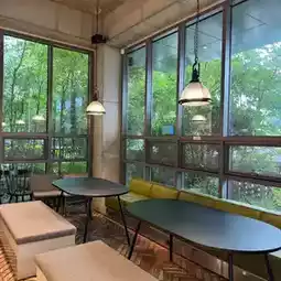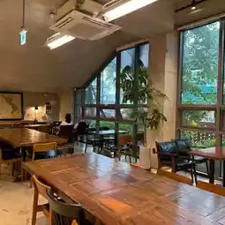 Large cafe located in Songchu Valley, various types of bread and cake, and ample parking space
