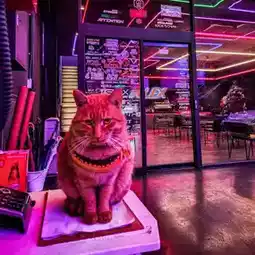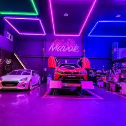 It’s a really hip cafe with a really cool vibe🤭 The lights are really flashy, and you can see expensive cars on display under the lights, and they look like the owner’s cars🫢 This is a really unique cafe that’s both a cafe and a tuning place. It’s my first time seeing something like this!! Inside, there are a lot of car accessories on display, like wheels, air fresheners, and brakes! You can negotiate the price separately, so if you’re interested, you can have a cup of coffee and talk about it🤭 In addition to coffee, they also sell desserts and cafe goods, so there was a lot to look at! It's a place where you can take a lot of hip pictures because there are photo spots right in front and in every corner💜 It's a place where you can feel that the owner really loves cars😄 And the resident cat is like a dog cat, like a Cerberus guarding the entrance, welcoming you and saying goodbye😆😆 Sometimes he comes inside and rubs you before leaving💜