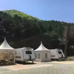 There is an art gallery next to the camping site, so you can camp for a day and also visit the art gallery. There is a stream flowing right in front, so you can play in the water in the summer. It is also quite large, so it is good for taking a walk.
