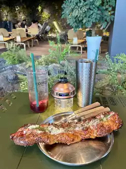I visited an indoor 'camping ground cafe' that brings nature inside.