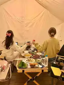 I went there with high expectations for a camping cafe, and it lived up to my expectations with its wonderful indoor atmosphere! 😍 Wow, first of all, the interior is spacious and really relaxing, and the first floor has a small waterfall and tent chairs, which really adds to the camping atmosphere. 🌊⛺