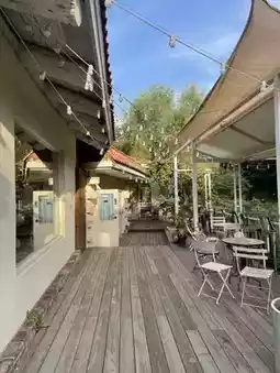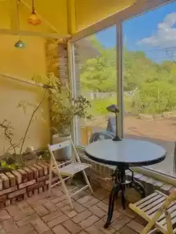 It's not a real train track, but it's a cafe near Seoul with a photo zone decorated like a train track, things to do, seats on a bridge like a train track, and indoor and outdoor seats.