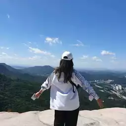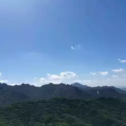 The mountain birds are surrounding me on the rock, and the mountain and sky are so beautiful.