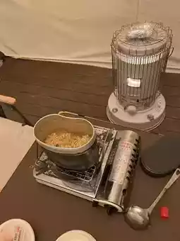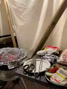 ◽️Cook sweet potatoes by the personal heater inside the tent 🍠
