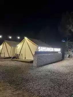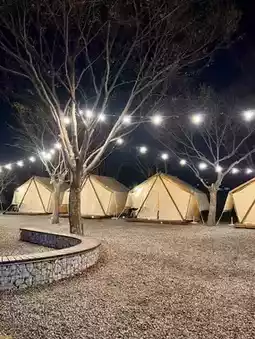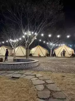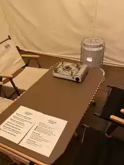 ◽️Tents with chairs, tables, personal heaters, blankets, and more 🏕️