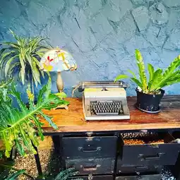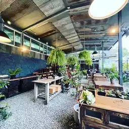 In addition to drinking coffee, the store also sells potted plants