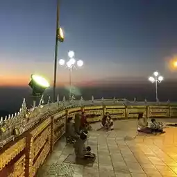 Kyaiktiyo Pagoda is one of the five sacred places that Burmese people must pay homage to. It is also a pagoda for people born in the year of the dog that people born in this year must pay homage to at least once in their lives. In the Mon language, it means a rock shaped like a hermit's head. Kyaiktiyo Pagoda is located in Kyaikto, Thaton District, Mon State, Burma, on top of Phueng Luang Mountain, 3,615 feet above sea level. The distinctive feature of Kyaiktiyo Pagoda is that it is a large golden rock, 5.5 meters high, perched precariously on a steep cliff, as if it will fall and defy gravity without falling down.