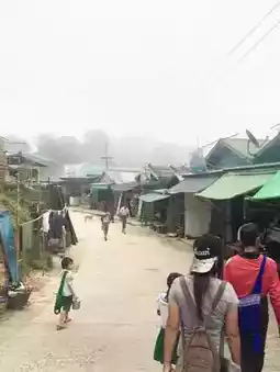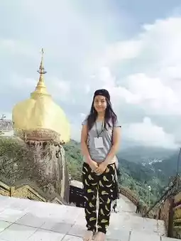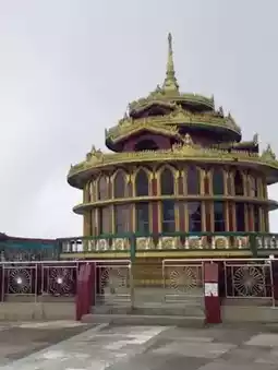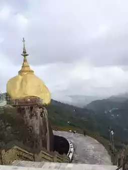 Phra That In Hang or Kyaiktiyo means the rock shaped like a hermit's head. It is a large golden rock 5.5 meters high, located on a steep cliff. It is a wonder that it is believed to be the rock that Indra hung. There is also a pagoda built on the rock that is a replica of Phra Kesa Kaew Chulamani, which is the pagoda for the year of the dog. I was born in the year of the dog. I felt very good to go and pay homage for once. From the top, you can see the surrounding view. There is fog. The air is quite cool because it is on a very high ground.