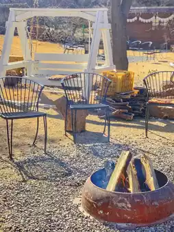 A cafe where you can roast marshmallows while enjoying a bonfire
