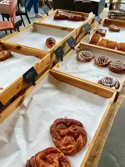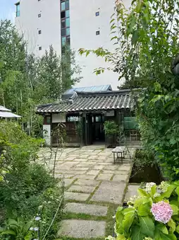 It's divided into a Hanok-style space and a main space with large windows. They also sell bakery items, but there weren't many,