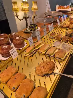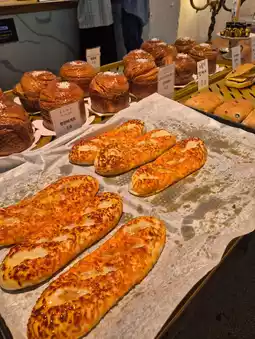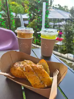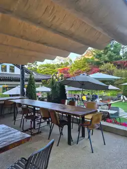 There are so many kinds of bakery here! 😋 I went to eat mugwort bread, but it was late in the afternoon so it was a shame that there weren't any, but the basil garlic baguette was also delicious! 🥖 There are two floors inside, and the garden outside is well-kept, so I was able to heal in nature. At first, I thought it was a huge cafe, but it was a cafe with a garden of a normal size! 🌿 The signature cream puff latte and fresh fruit kiwi apple juice were both delicious! 🍹