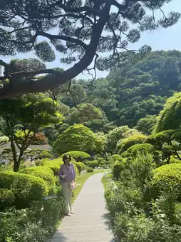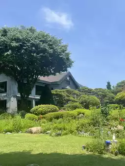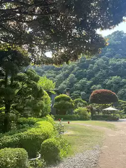 The well-maintained garden features a stream, providing a cool and serene environment. There is also an Italian restaurant on-site, making it a great place for a meal.