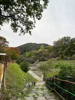 The park's autumn-hued mountains and maple trees blended together to create a breathtaking landscape. Walking along the trails, breathing in the fresh air, and taking a break at the numerous rest areas felt truly peaceful. The surrounding mountain slopes and the vibrant colors of the sky blended together, creating a landscape reminiscent of a painting.๐ฎ