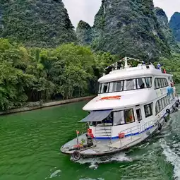 The luxurious way of traveling from Guilin to Yangshou is taking a cruise 🛥. On the way you can enjoy the beautiful mountains and scenery of Li river 🖼🌄🏞. Also the scenery of mountain in 10 RMB note 🌄.