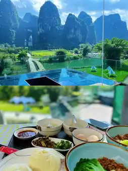 The only small downside might be the lack of an elevator? But the service is very attentive; they help with luggage, and breakfast can be delivered to be enjoyed in the garden. So, when I woke up the next morning, opened the curtains, and lay in bed admiring the world-class landscape, when I was having breakfast in the garden watching the bamboo raft fleet drift by, and when I was posing for photos on the terrace and swing, I couldn't stop exclaiming how wonderful the hotel I chose was.