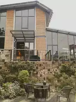 Detached glass room, panoramic balcony, small stone road, best shooting in the evening 🌇